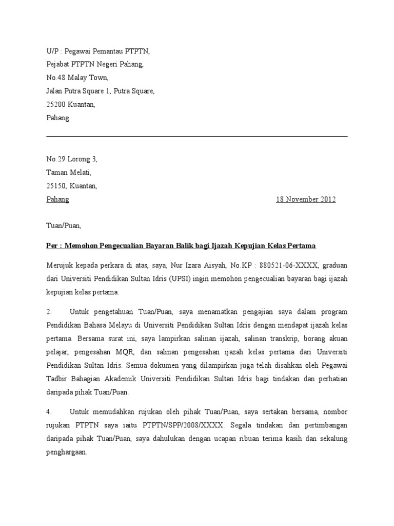 Permohonan Pengecualian Ptptn Bagi Pemegang Ijazah Kelas Pertama Pdf