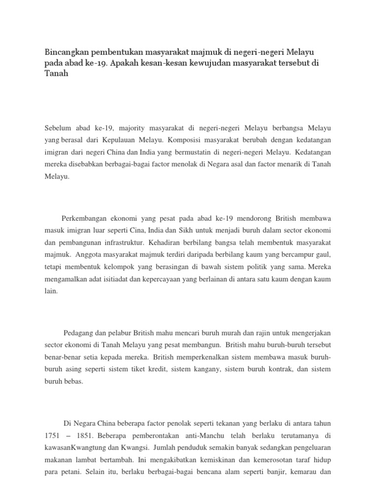 Bincangkan Pembentukan Masyarakat Majmuk Di Negeri Pdf